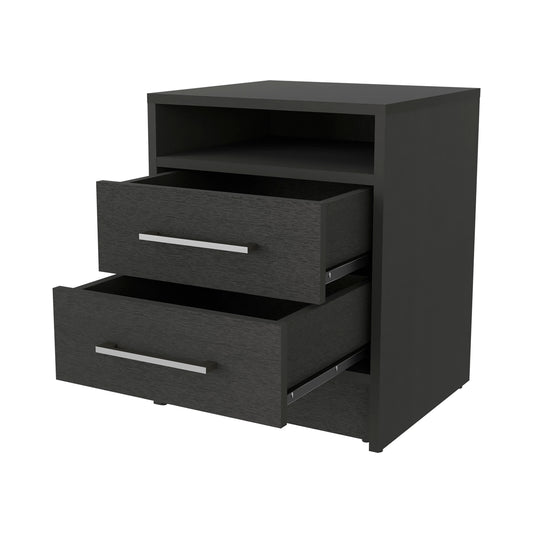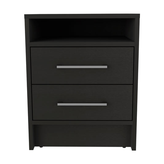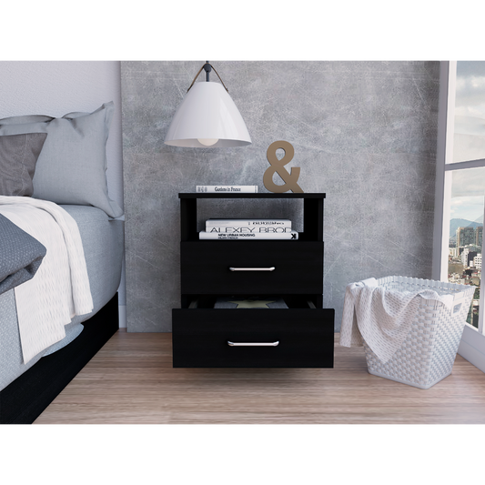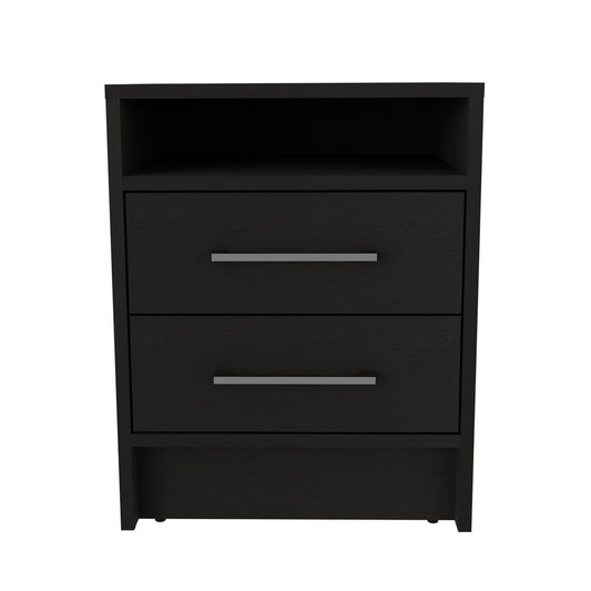 Eter Nightstand , End Table, Side Table Superior Top, Two Drawers -Black