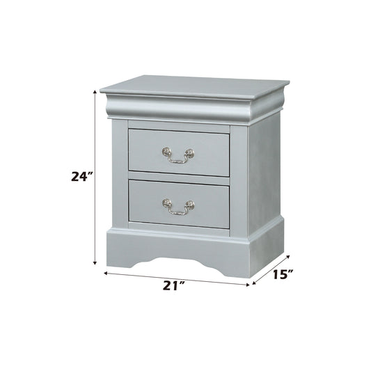 Nightstand Cervants, Two Drawers, Metal Handle, Light Gray Finish