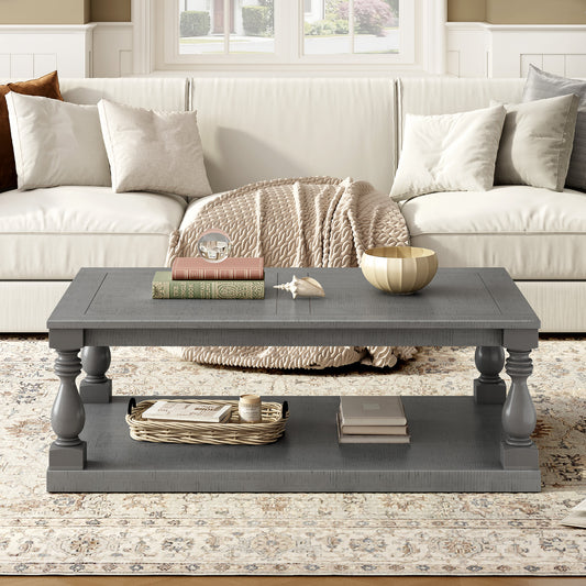 U_STYLE Vintage Coffee Table Featuring Artistic Vase Column Legs and Luxurious Pine Veneer for Timeless Charm,Suitable for living room, study room