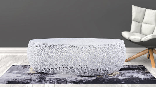 The cylindrical table with its patterned design can be easily integrated into a variety of interior styles, from coffee tables to small dining tables, workbenches or makeshift writing desks.