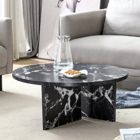 Versatile MDF Black Round Coffee Table for Various Interior Styles, Exhibiting Modern Minimalism and Nordic Charm, with Product Dimensions of 31.5*31.5*13.98 Inches.