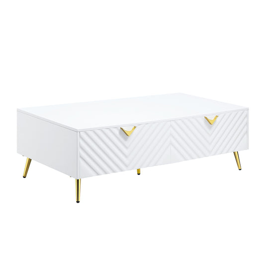White High Gloss 2-Drawer Coffee Table with Support Leg