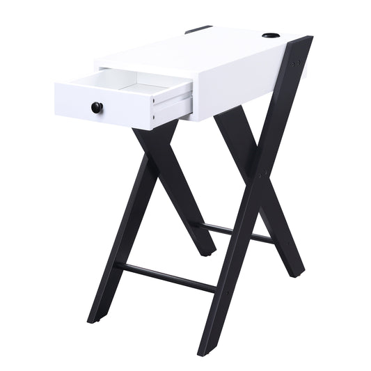 White Modern Chairside Table with Two Cup Holders, Display Accent Table