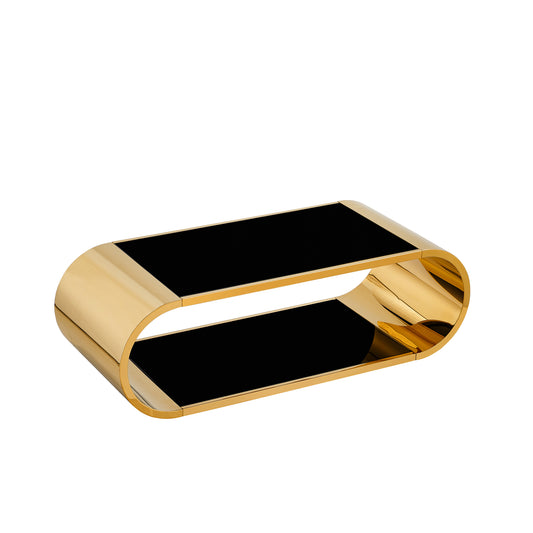 57' Gold Stainless with Glass Coffee Table, Modern Coffee Table for Living Room, 2-Tier Glass Top with Large Space Fashion Design