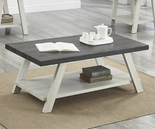 Athens Contemporary Two-Tone Wood Shelf Coffee Table in Weathered Gray and Beige