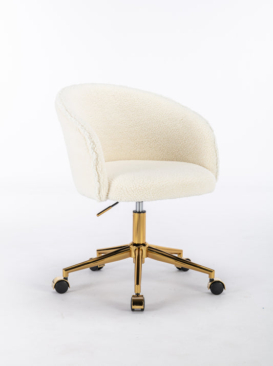 A&A Furniture Office Chair,Artificial rabbit hair Home Office Chair with Metal Base,Adjustable Desk Chair Swivel Office Chair,Vanity Chair(Ivory)