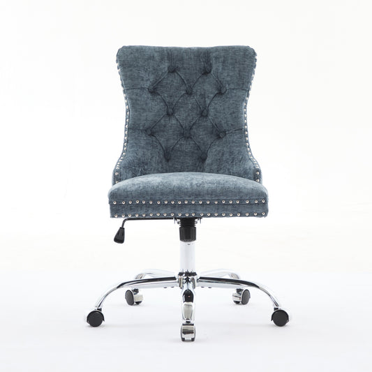 A&A Furniture Office Chair,Modern Chenille Upholstered Tufted Button Home Office Chair with Chrome Metal Base,Adjustable Desk Chair Swivel Office Chair (Light Blue)