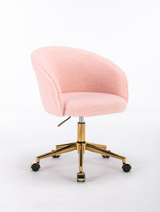 A&A Furniture Office Chair,Artificial rabbit hair Home Office Chair with Metal Base,Adjustable Desk Chair Swivel Office Chair,Vanity Chair(Pink)