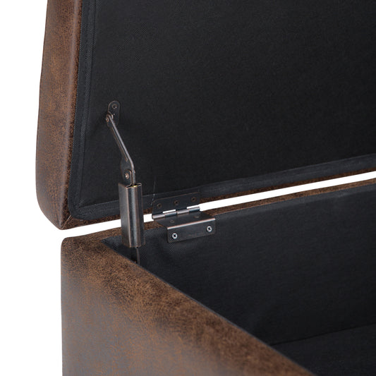 Owen - Lift Top Large Coffee Table Storage Ottoman - Distressed Saddle Brown