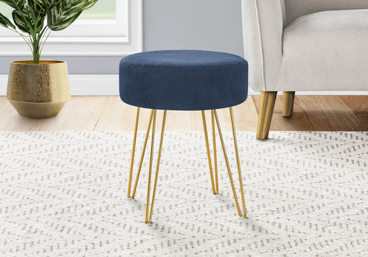 Ottoman, Pouf, Footrest, Foot Stool, 14' Round, Blue Fabric, Gold Metal Legs, Contemporary, Modern