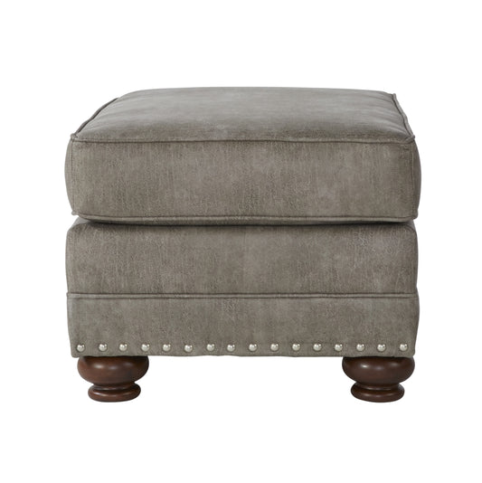 Leinster Faux Leather Ottoman with Antique Bronze Nailheads