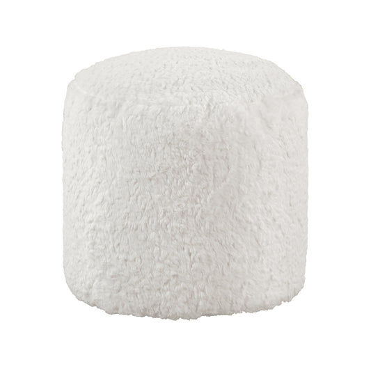 Modern Pouf Off-White Faux Fur Fabric Upholstered Ottoman, Footstool, Non-Slip Floor Pouf, Bean Bag Chair, 1pc Sitting Pouf