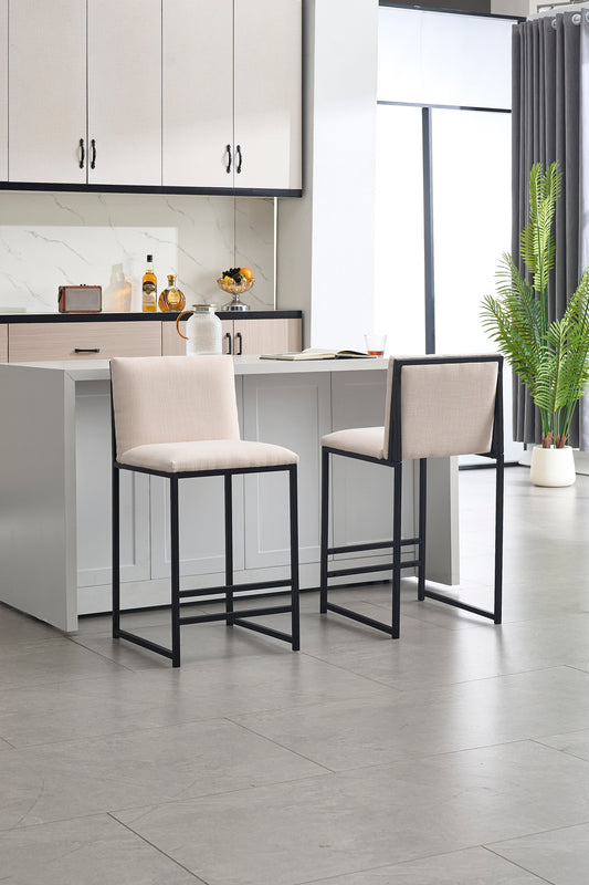 Counter Height Bar Stools Set of 2, Upholstered Linen Bar Chairs, Metal Footrest and Frame for Kitchen,Dining Room-IVORY