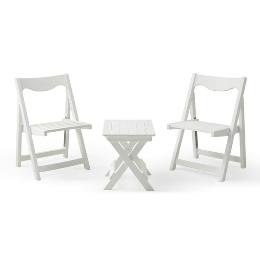 HIPS Foldable Small Table and Chair Set with 2 Chairs and Rectangular Table White
