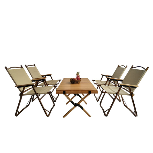 Multi-Function Foldable and Portable Dining Set, 1 Dining Table & 4 Folding Chairs, Indoor and outdoor universal ,Natural