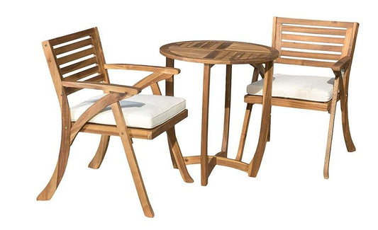 HIPS Material Outdoor Bistro Set Foldable Small Table and Chair Set with 2 Chairs and Rectangular Table, Teak