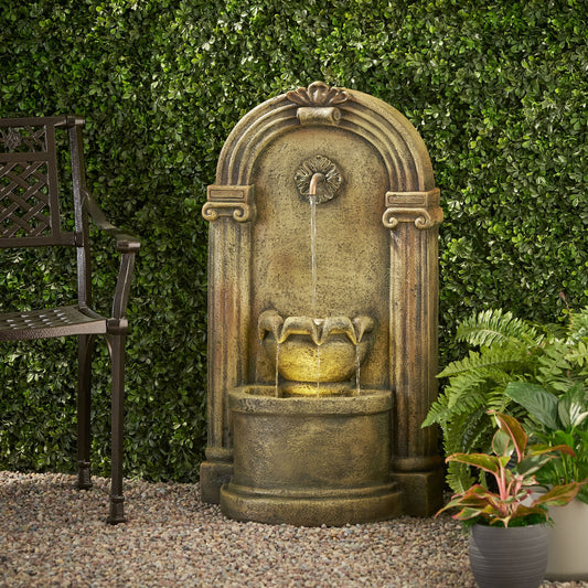 35.25' High Hand Crafted Weather Resistant Floor Fountain with Light, Light Brown