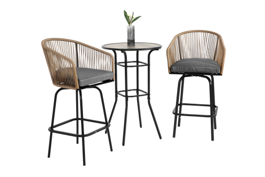 3pcs Outdoor Bar Set, Patio Bar Table and Chairs Set, Bar Height Patio Set - 2 x Swivel Bar Chairs , 1 x Round Bar Table(DPC Wood-Like)-Grey