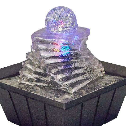 8' Tall Polyresin Indoor Fountain, LED Light and 1L Capacity, Spiral Ice Design