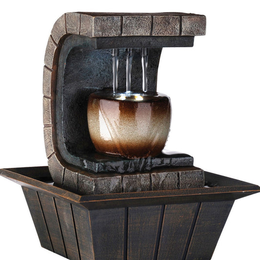 9.4x9.1x23.8' Black and Brown Sculptural Water Fountain with Bowl Basin, with Light and Pump, for Indoor and Outdoor