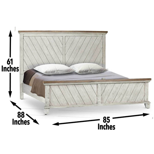 1pc King Size White Finish Panel Bed Geometric Design Frame Softly Curved Headboard Wooden Bedroom Furniture