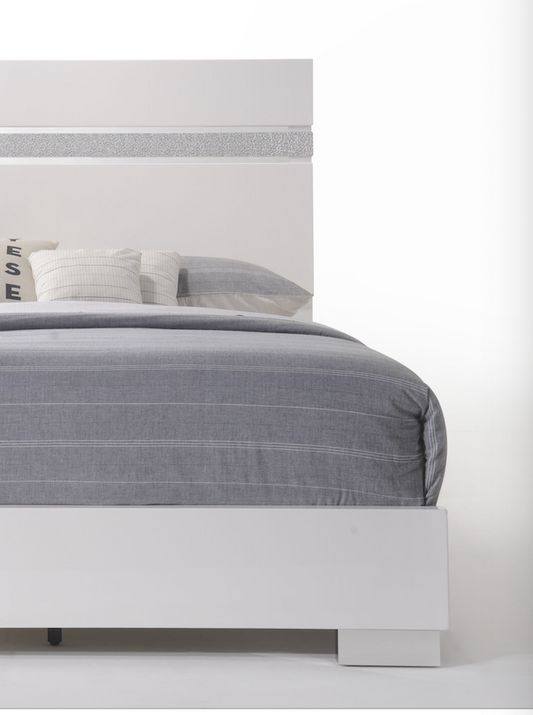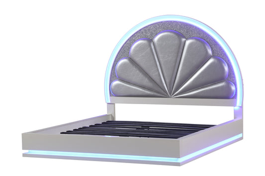 Olivia Contemporary Style Queen Bed Made with LED Headboard & Wood in White