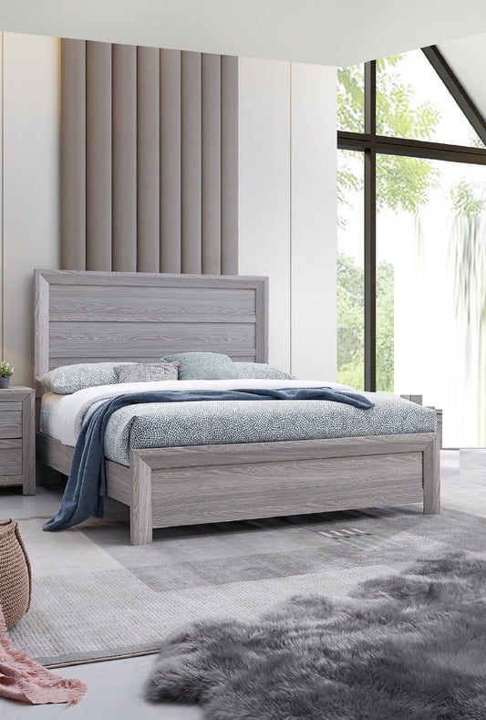 Rustic Gray Finish Full Size Panel Bed Wooden Bedroom Furniture 1pc, Bed in a Box