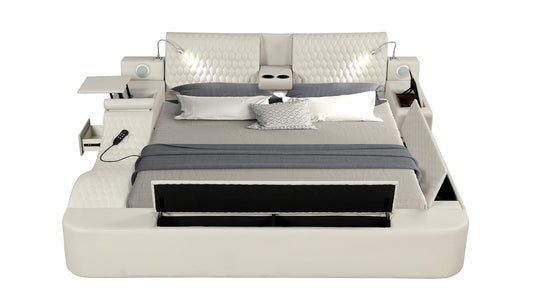 Smart Multifunctional Queen Size Bed Made with Wood in Beige
