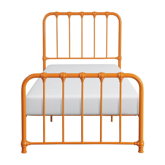 Metal Bed Orange Finish Twin Platform Bed 1pc, Bed in a Box