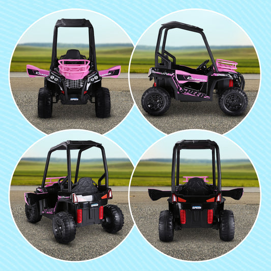 Aosom 12V Kids UTV, Battery Powered Electric Ride on Car with Music, Lights, MP3/USB, Suspension System & Remote Control, Toy Vehicle for Boys and Girls, Pink