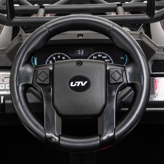 24V Two-seater Kids Ride On UTV w/Parents Control,20in seat width,400W Super high power,Four-wheel Suspension,Bluetooth,MP3,USB,LED Light,Horn,Rear storage space,Speeds 3.73-4.97MPH For Kids aged 3+.