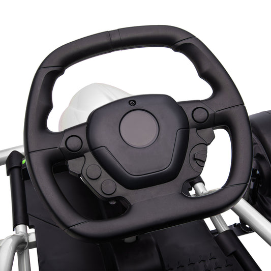Aosom 24V 7.5 MPH Electric Go Kart with Adjustable Seat, Drifting Car Battery Powered Ride on Toy Outdoor with Slow Start, Button Start, Music, Honking Horn, Lights, for 6-12 Years Old, White