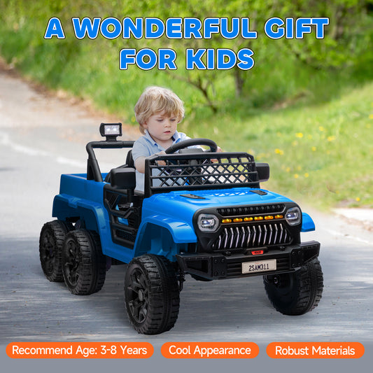 Qaba 12V 4x4 Kids Ride on Truck with Back Trailer, 2WD/4WD Switchable Kids Electric Car with Parent Remote Control, Spring Suspension System, Soft Start, Music, LED Light, Horn, Light Blue