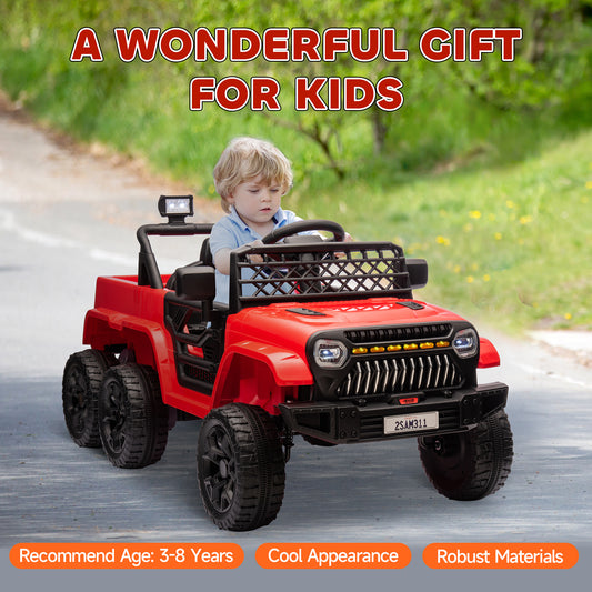 Qaba 12V 4x4 Kids Ride on Truck with Back Trailer, 2WD/4WD Switchable Kids Electric Car with Parent Remote Control, Spring Suspension System, Soft Start, Music, LED Light, Horn, Red