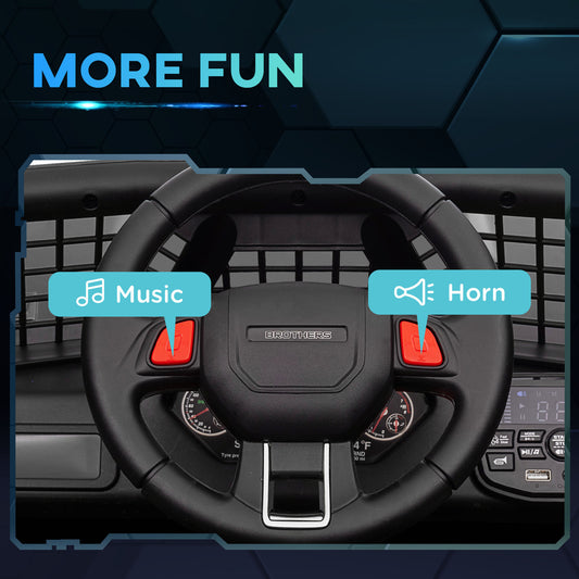 Qaba 12V Electric Car for Kids, Battery Powerd Kids Car Police Car with Remote Control, 4 Spring Suspension Wheels, Transport Wheel, Siren, Music, Light, Horn, Black