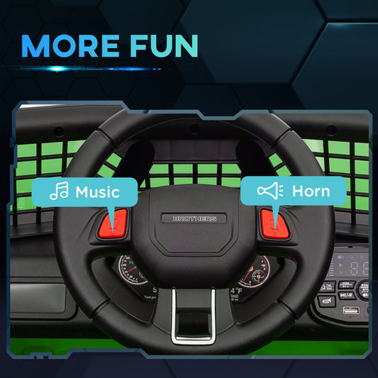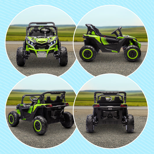 Qaba 24V 7AH Ride on UTV, 2 Seater 4MPH Kids Electric Car Ride on Battery Powered Toy with 4 Shock Absorbers, Music Horn and LED Lights, for Toddlers 3-8 Years, Green