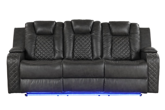 LED & Power Reclining Sofa Made With Faux Leather in Black