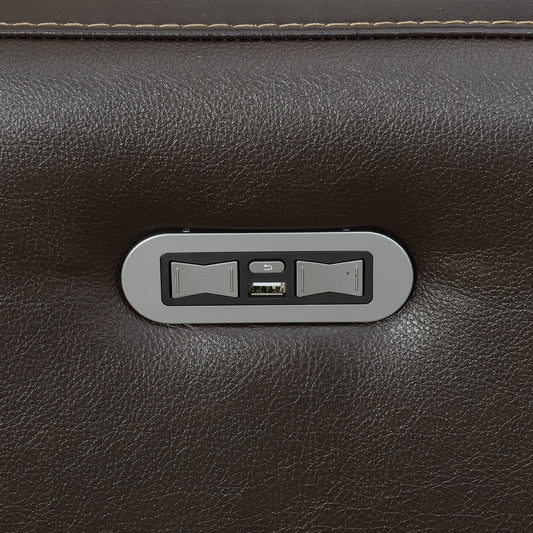 Luxury Power Reclining Sofa Recliner in Dark Brown Top-Grain Leather - Ultimate Comfort with Power Leg Rest and Articulating Headrest - Elegant and Relaxing Furniture for Living Room or Home Theater