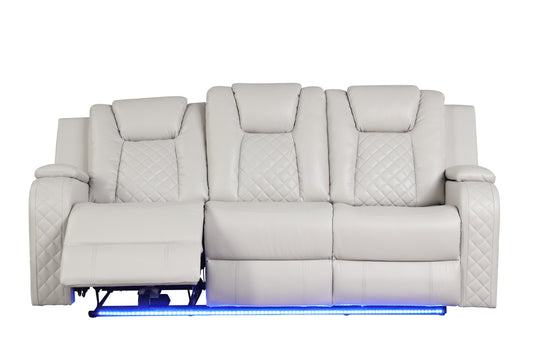 LED & Power Reclining Sofa Made With Faux Leather in Ice