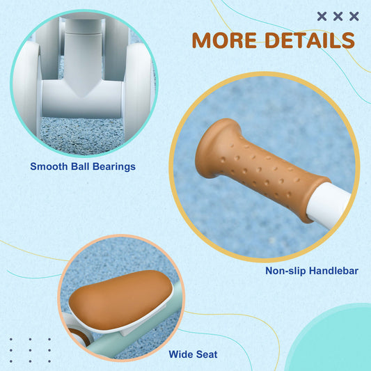 Qaba Balance Bike for Toddlers 1-3 Years, Baby Balance Bike with Adjustable Seat, Silent Wheels, No Pedal Bike for Boys and Girls, Green