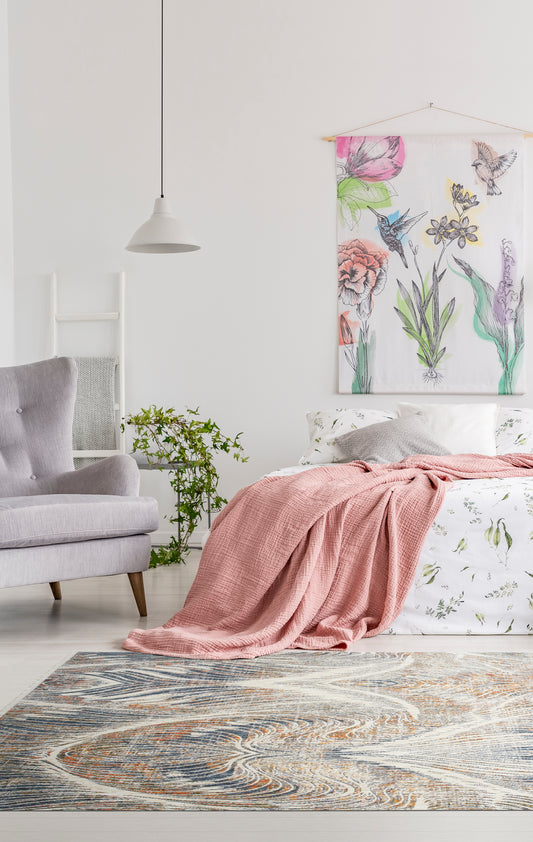 LOOM & LUXE Collection 5X7 Ivory/Blue /Abstract Non-Shedding Living Room Bedroom Dining Home Office Stylish and Stain Resistant Area Rug