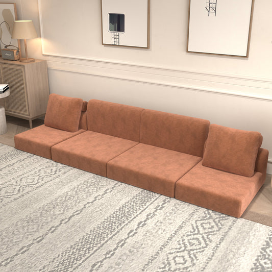 Convertible combination sofa, corduroy fabric, fluffy modern sleeper sofa chair, oversized combination living room double lounge chair,Beige