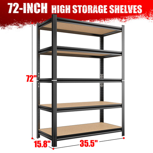 Storage Shelves - 5 Tier Adjustable Garage Storage Shelving, Heavy Duty Metal Storage Utility Rack Shelf Unit for Warehouse Pantry Closet Kitchen, 35.4" x 15.7" x 70.8", Black