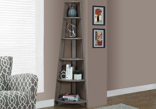 Bookshelf, Bookcase, Etagere, Corner, 5 Tier, 72"h, Office, Bedroom, Grey And Black Laminate, Contemporary, Modern