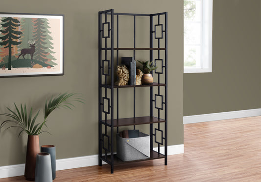 Bookshelf, Bookcase, Etagere, 4 Tier, 62"h, Office, Bedroom, Brown Laminate, Black Metal, Contemporary, Modern