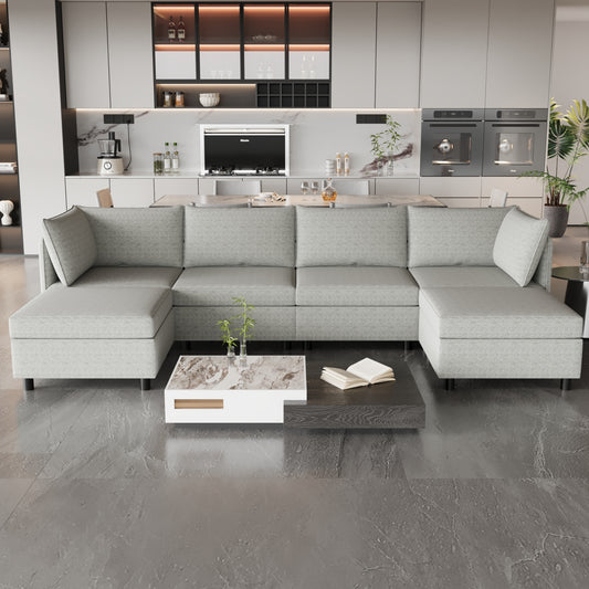 Modular Sectional Sofa, Convertible Sofa Seat With Storage, Sleeper Sectional Sofa Set, Fabric Flexible Modular Combinations for Living Room