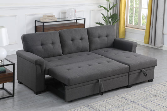 Lucca 84" Dark Gray Linen Reversible Sleeper Sectional Sofa with Storage Chaise