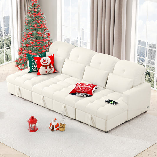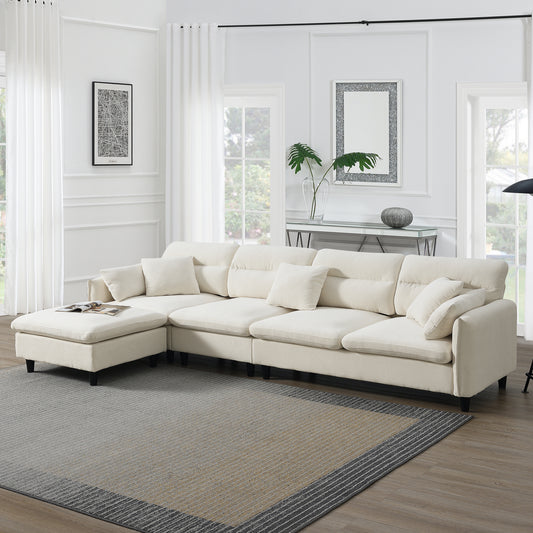 126-inch Corduroy With Cup Holder Super Large L-Shaped Sofa, Movable Footrest, Four Waist Pillows And Four Back Cushion, With USB Port And Type-C Port