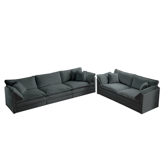 Sofa Set of 2 Chenille Couch, 2+3 Seater Sofa Set Deep Seat Sofa, Modern Sofa Set for Living Room, Green Chenille