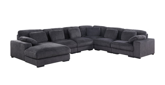 Nadine 155.5"W Dark Gray Corduroy Corner Sectional Sofa with Left-Facing Chaise